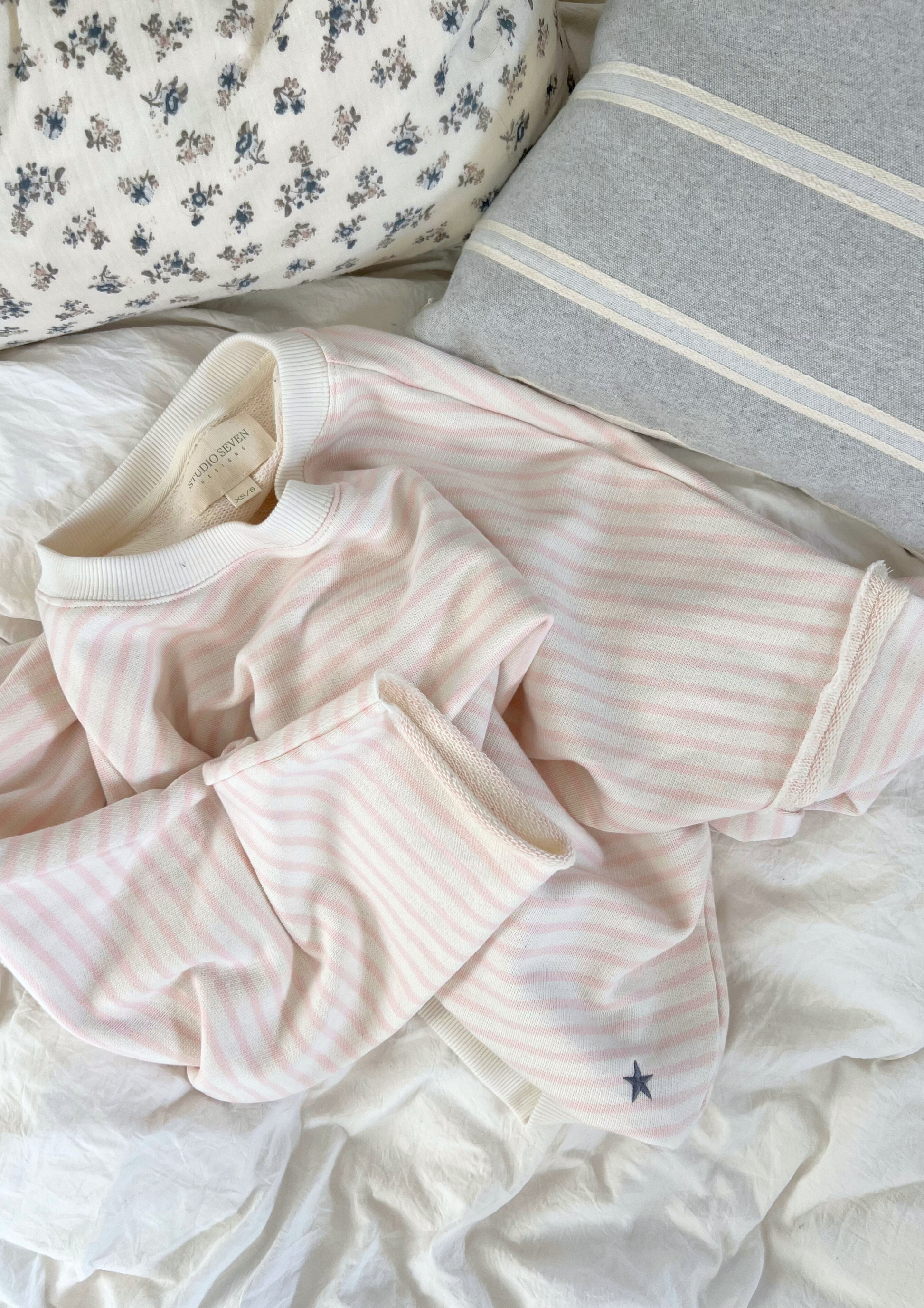 ★★★★★Le pull de plage présente des rayures roses et blanc cassé décontractées dans une coupe ample et oversize, parfait pour enfiler après une baignade, à superposer lors des soirées plus fraîches, ou simplement pour adopter ce look côtier sans effort.