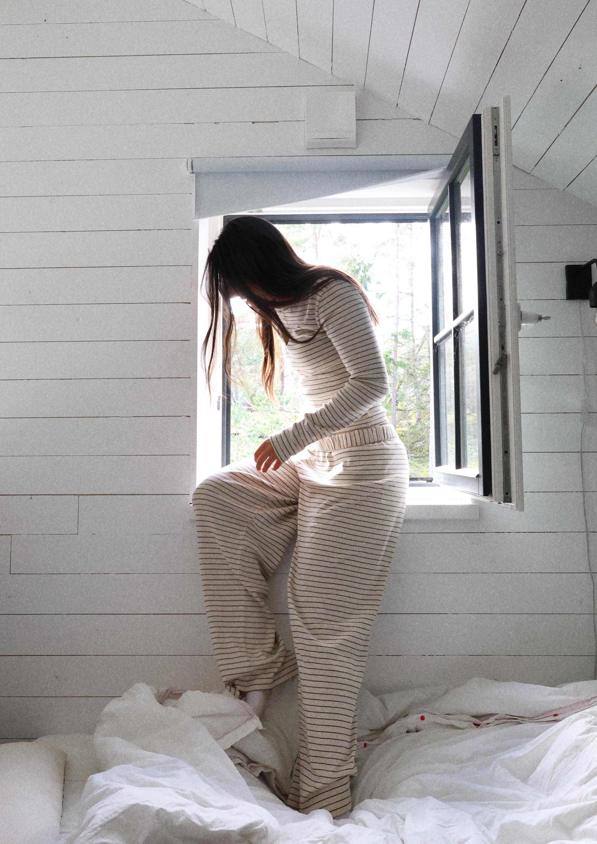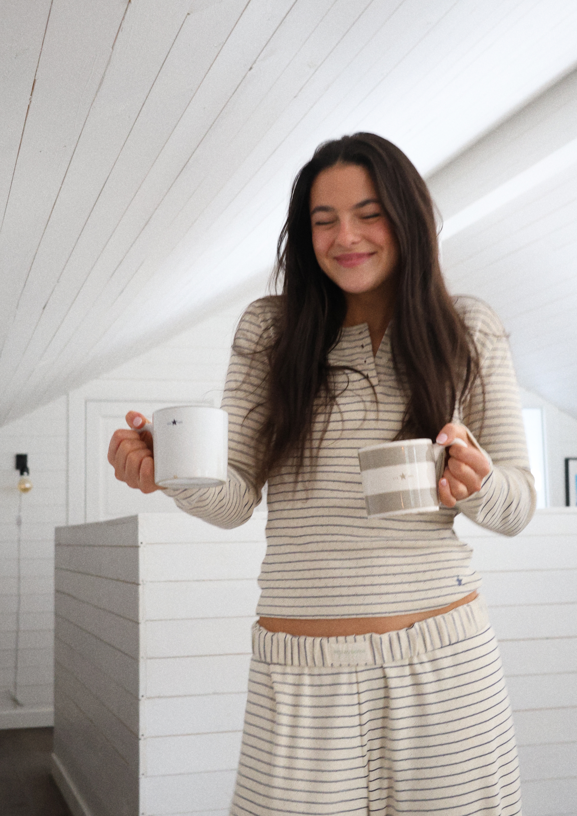 ★★★★★Le pantalon de salon Luna est conçu pour les moments de détente de la saison. Confectionné dans le tissu ajouré le plus doux et rehaussé d'un imprimé à rayures classiques, il apporte une texture délicate et un charme intemporel à vos moments de détente quotidiens. Imaginez des matins tranquilles, une boisson chaude à la main et le confort de quelque chose qui est aussi agréable à porter qu'à regarder. Alliant douceur, détails subtils et style sans effort, les Luna sont votre référence pour rester confortable et élégant tout au long de la saison.